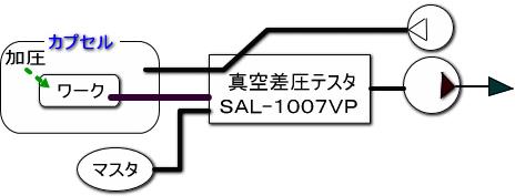 一般に多く使われている正圧差圧方式では検出媒体に圧縮空気を扱うので、圧縮性流体の特性が、そのまま検査性能上の問題としてあらわれます。 真空差圧方式は、温度変化による運動量の大きい空気分子の量をできるだけ少なくすることによって、不安定さを削減しようとする方式です。